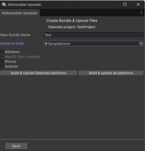 Eerst mote je inloggen op de backend, daarna selecteer je een project waar je data naartoe wilt uploaden. De laatste stap is het selecteren van de objecten die je wilt omzetten in addressables en voor welke platformen je het wilt uploaden. De tool doet vervolgens de rest. Aangezien addressables voor ieder platform individueel gebuild moeten worden, lag er hier nog een uitdaging. Wanneer Unityt switched van buildtarget begint er een recompilation. Dit zorgt ervoor dat data in de editor reset. Uiteraard is dat niet handig wanneer je die data nodig hebt om door te gaan in je proces. Ik moest dus opzoek naar een manier om deze beperking heen. Uiteindelijk heb ik ervoor gekozen om de nodige data tijdelijk op te slaan in een ScriptableObject vlak voor een recompilation. Wanner de tool dan weer opstart checkt het of de ScriptableObject bestaat. Wanneer dit het geval is worden de data herbouwd en gaat het door met de volgende stap wanneer dit nodig is.
